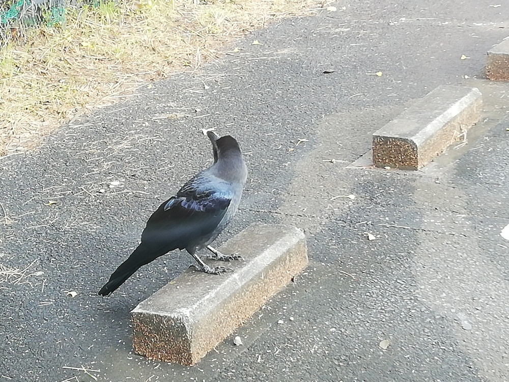 日の出を見た後に車の中で仮眠をとっていたら物音がするので見てみたらカラスがいました。死んでるとでも思ったのでしょうか。
