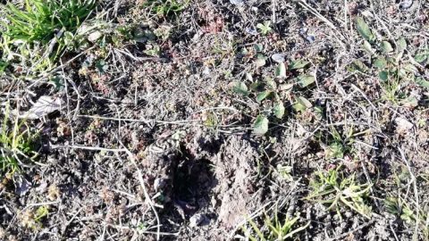 粘土質で乾けばカチカチで乾いた土には生物の気配は皆無。