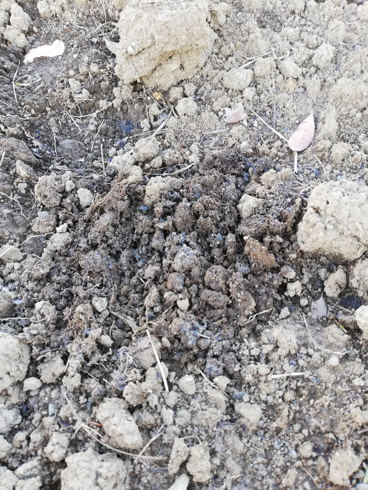 完熟の腐葉土と燻炭と米ぬかをすきこんだ場所は比較的サラサラした土になっていました。すきこむ物と量の違いで水はけがこんなに変わるもんなんですね。