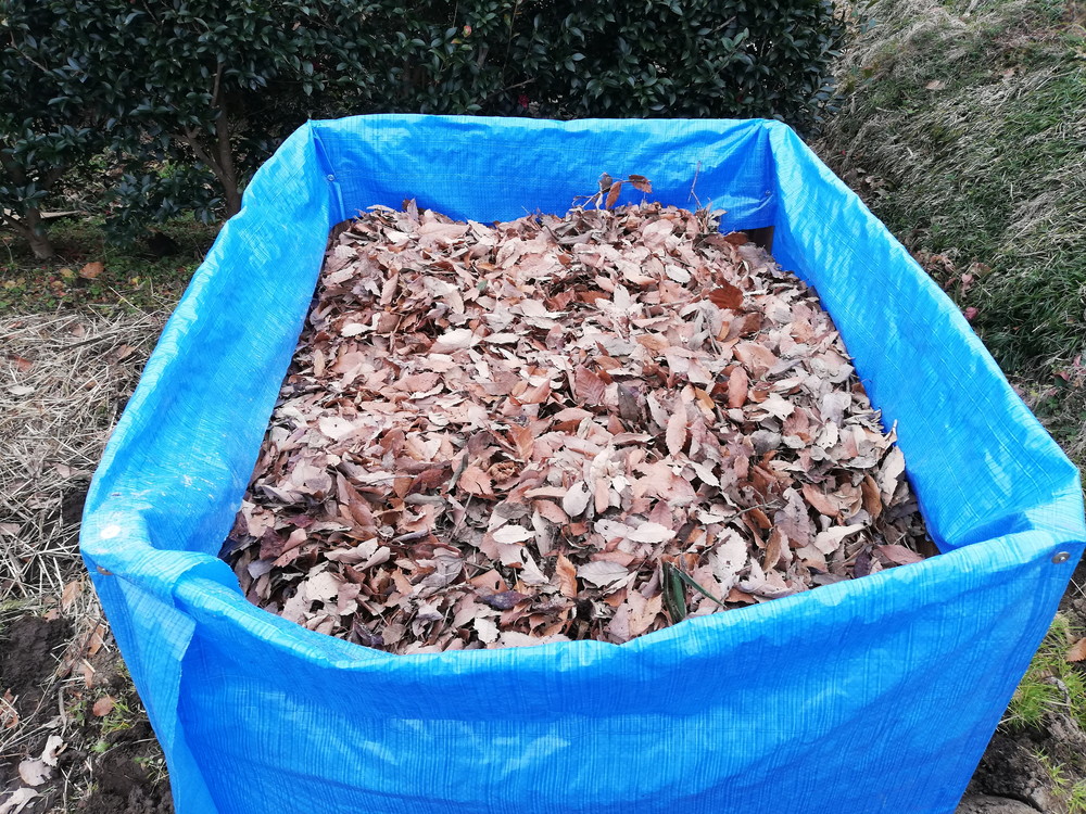 これから裏山の神社の境内の掃除がてら少しばかり落ち葉を頂いてきて、精米所から取ってきた米ぬかを投入して腐植させ、秋植えの頃に使います。