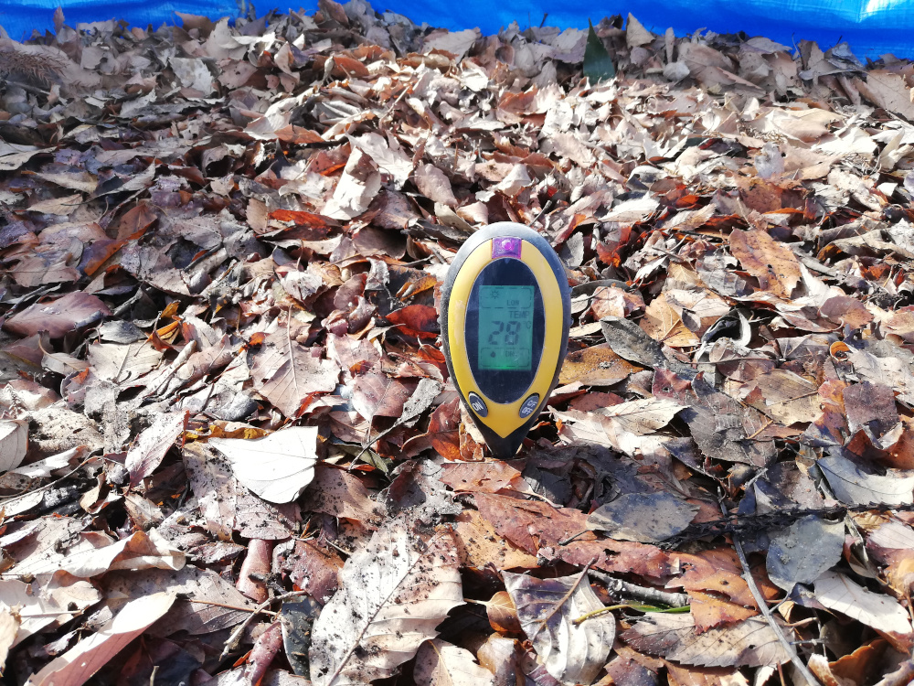 温度を測ってみたら28℃になっていました。(外気温13℃)微生物たちが働いてくれていますね。