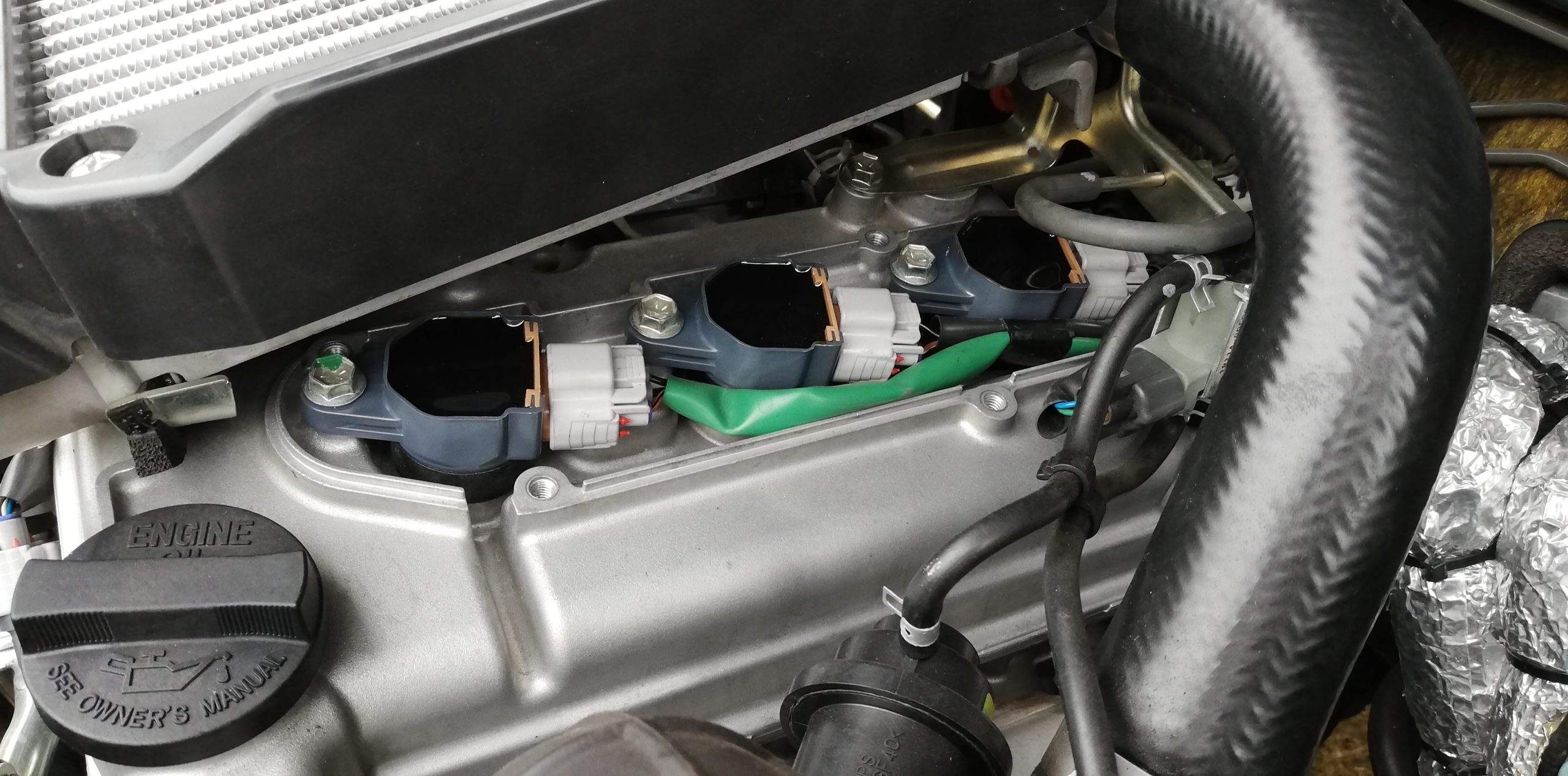交換したイグニッションコイルはエムズ部品のもの。3本で6500円でした。会社名などの刻印は無く、どこの製品か全くわからないのが怖いところですが、質感や重量的に純正品と瓜二つです。おそらく品質的にはさほど問題無いと思います。本当にヤバいヤツは質感で分かりますので。