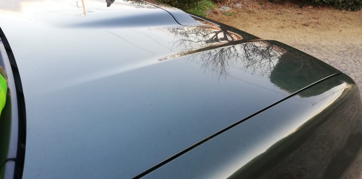 コーティング後に鳥の糞がボンネットに弾着しましたが、ぬれタオルでスッと拭き取るだけで綺麗に落ちました。ガラスコーティングすげぇ・・・