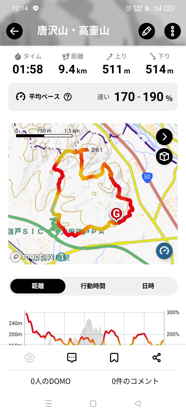 距離9.4km、時間1:58。初めて170%~190%というペースを記録できてちょっと嬉しい。