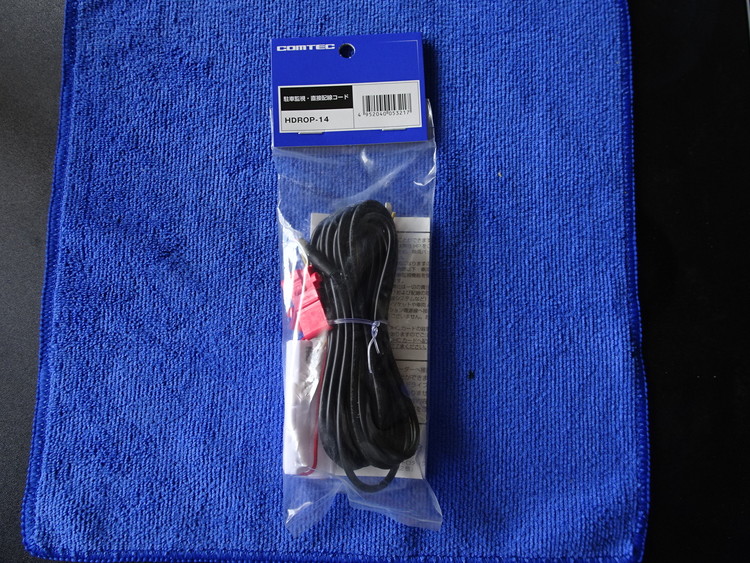 ZDR016を単体で購入するとシガーソケット電源が付属しますが、自分の場合は、駐車監視用の配線コードHDROP-14を購入して接続しました。