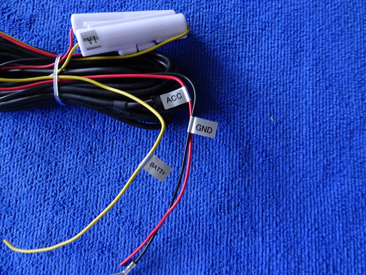 ケーブルは3つ。ACC、BATT+、GNDです。ACCはアクセサリー電源、BATT+が常時電源、GNDがボディアースです。