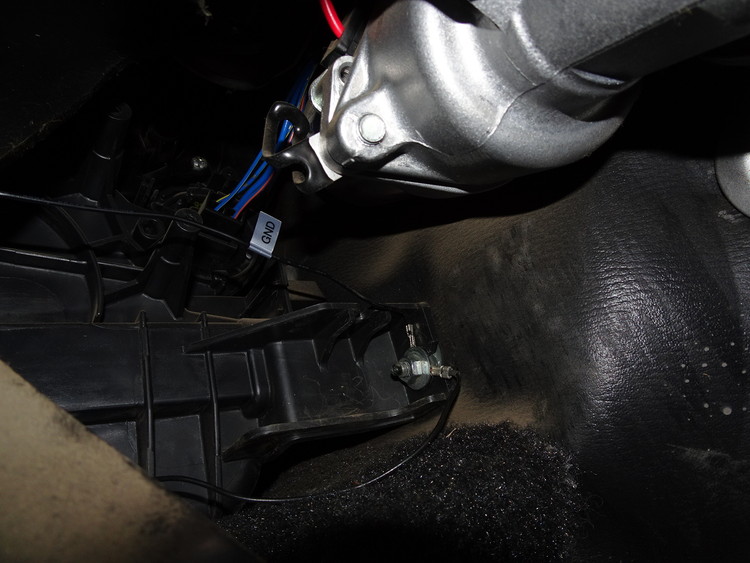 GNDはセンターコンソールの奥のほうのボルトに取り付けました。