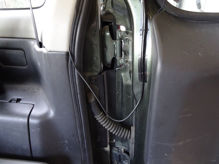 ここまで内張をはがすことができれば後ろまではその延長です。基本的にクリップで止まっているので少しずつ引っ張って外していきます。隙間に線を押し込みながら後ろまで配線を持ってきます。ここまで一切内張はがしのような工具は使用していません。