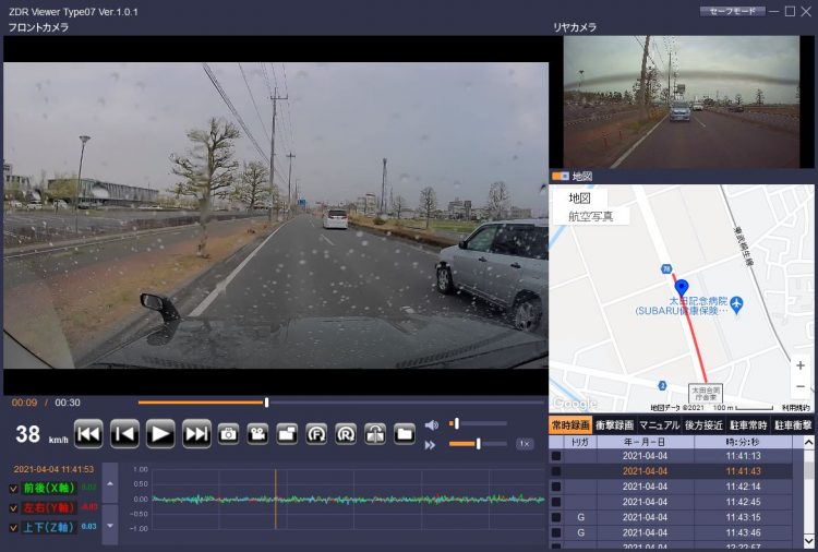 車速、時間、場所、フロントカメラ映像、リアカメラ映像、ほしい情報すべてが記録されています。